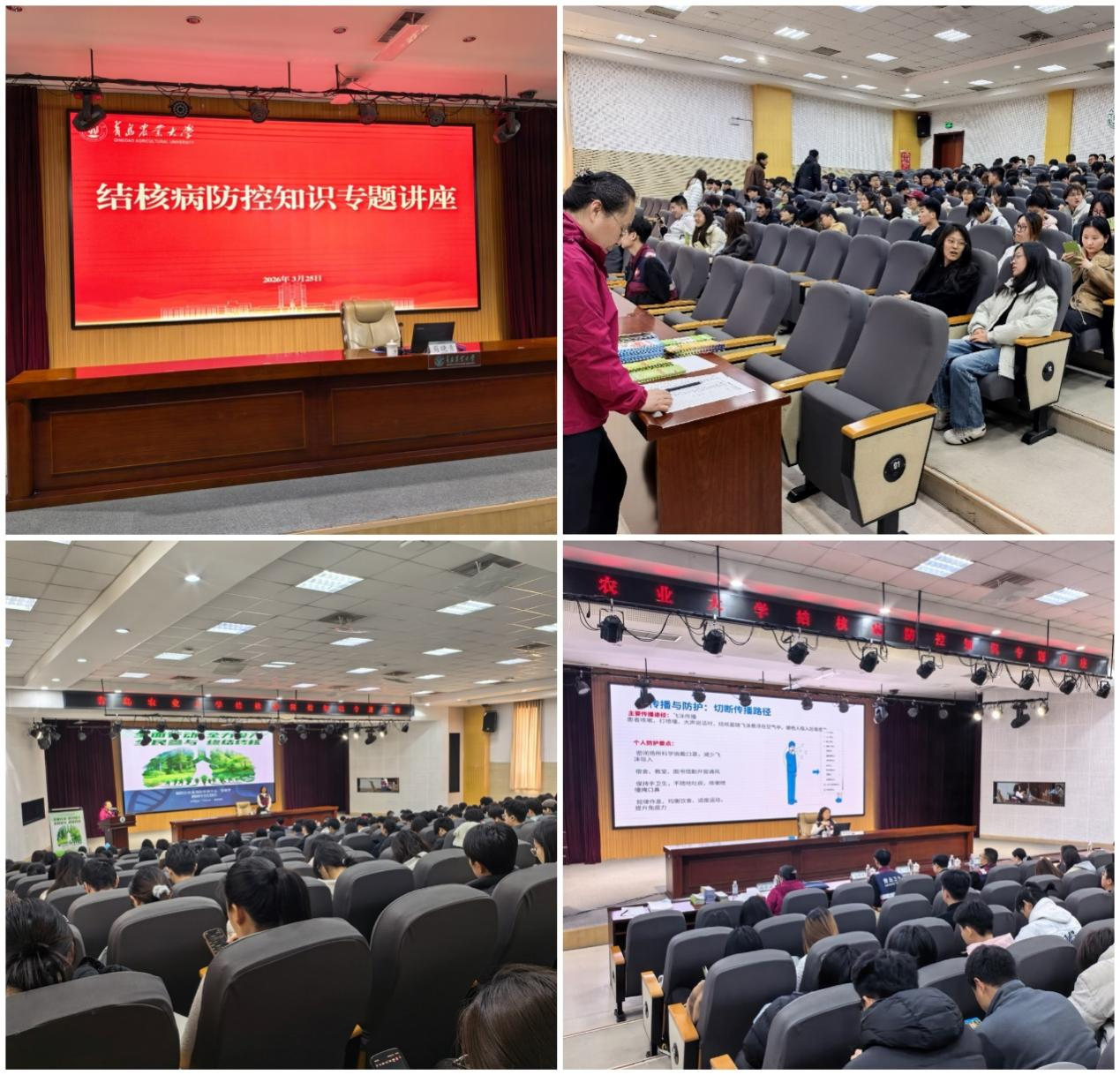 3月25日上午,我校后勤保障处联合学生工作处,邀请城阳区疾控中心结防科专家为我校350余名师生代表开展了一场结核病防治知识专题讲座。讲座开始之前,校医院工作人员向师生发放了结核病防治知识宣传手册及单页等材料1000余份,并举行了签名活动。