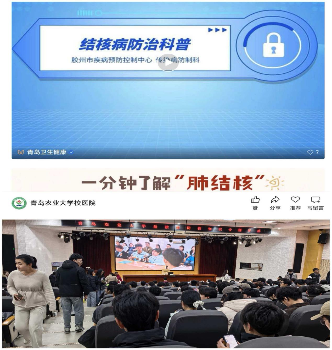 此次结核病防治系列宣传活动,整合了讲座、宣传片、横幅等多种宣传形式,内容丰富、针对性强,有效填补了师生在结核病防治知识上的空白,进一步提升了全体师生的防控意识和自我保护能力,为构建健康、安全、和谐的校园环境奠定了坚实基础。下一步,我校将持续健全常态化健康宣教机制,把结核病防控融入日常校园管理,以扎实举措守护师生健康,共建无“核”平安校园。