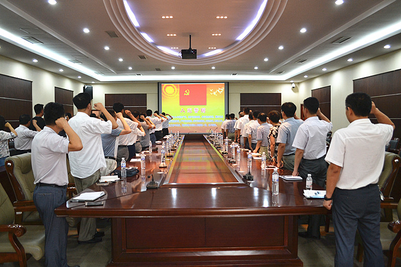 党课开始前,全体党员起立唱国际歌,在后勤集团党总支书记李考年的带领下重温入党誓词。