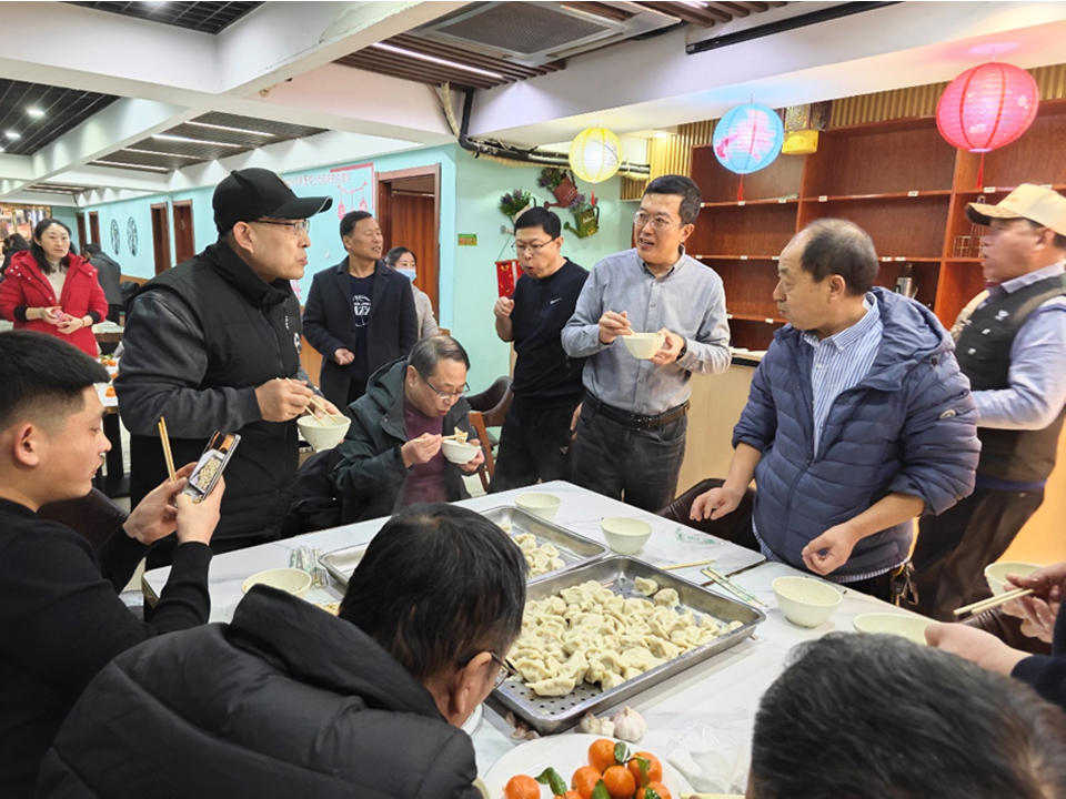 活动中,全体职工大展才艺,现场擀出薄如荷叶的“草帽皮”、捏出饱满圆润的“元宝饺”。大家围案而聚、分工协作,案板上不一会便排满了“月牙饺”、“钱包饺”。随着第一盘饺子在腾涌的热气中出锅,香味瞬间弥漫整个食堂。大家围坐桌前共同品尝,笑声与赞叹交织成最动听的新春序曲。